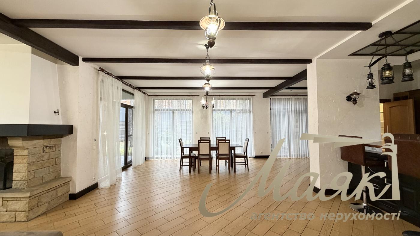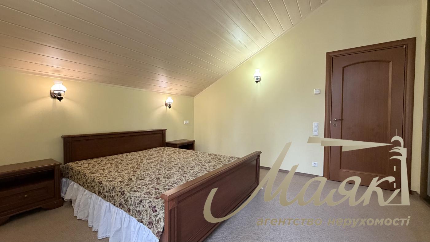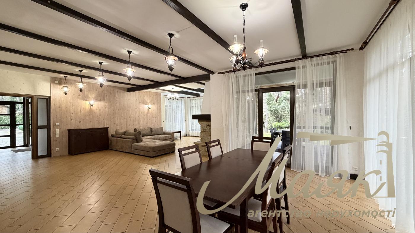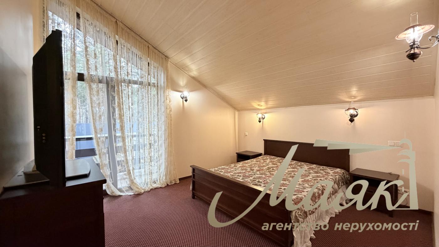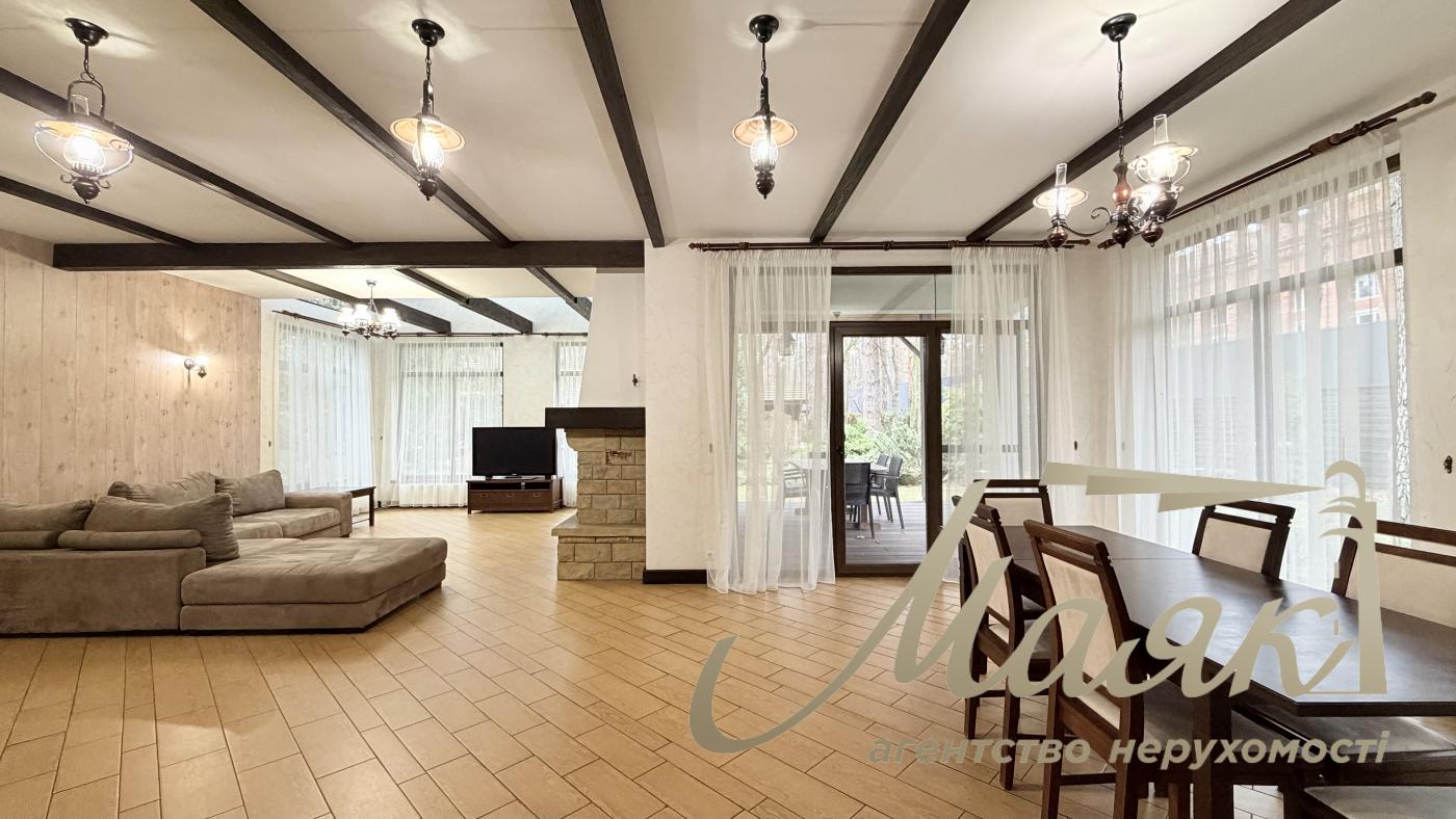Оренда будинку в Конча-Заспі, котеджне містечко в сосновому лісі, Плюти. Вишуканий котедж для комфортного життя в оточенні природи. Основні характеристики: Площа будинку: 300 м², 2 рівні. Ділянка: 15 соток. Планування: Камінний зал. Їдальня зона і кухня з барною стійкою. 4 спальні, включно з майстер-спальнею із санвузлом і гардеробною. 3 гардероби. 4 санвузли. Бойлерна і котельня. Гараж на 2 авто загальна автомийка. Додаткові зручності: Теплий басейн. Сауна. Тераса з BBQ. 2 балкони. Ландшафтний дизайн з туями, декоративними деревами і чагарниками. Дитячий майданчик і освітлення території. Інтер'єр: Дизайнерський ремонт у стилі Прованс. Підлогове покриття: тепла підлога, дорогий ковролін. Панорамні вікна в підлогу (склопакети - дерево). Стіни - іспанська штукатурка. Сходи - дерево. Кахель і сантехніка - Італія. Імпортні меблі та вся необхідна побутова техніка. Комунікації та безпека: Світло (3 фази), генератор, свердловина з фільтрацією, каналізація - септик, газ. Супутникове ТБ, інтернет (оптоволокно). Відеоспостереження та цілодобова охорона. Переваги локації: Чисте повітря, елітне оточення. Асфальтований під'їзд, розвинена інфраструктура. Відмінна транспортна розв'язка. Телефонуйте, щоб організувати перегляд! ID: