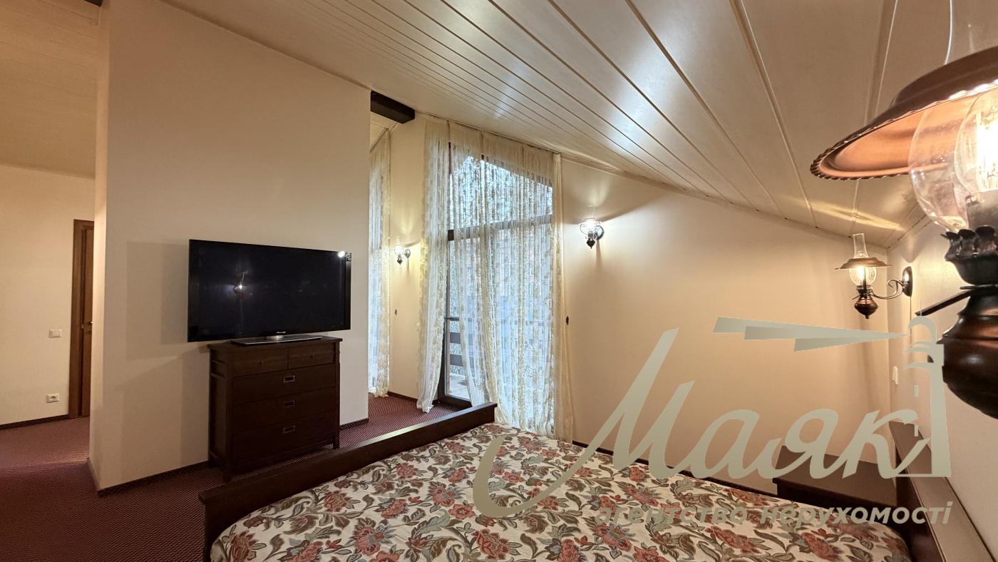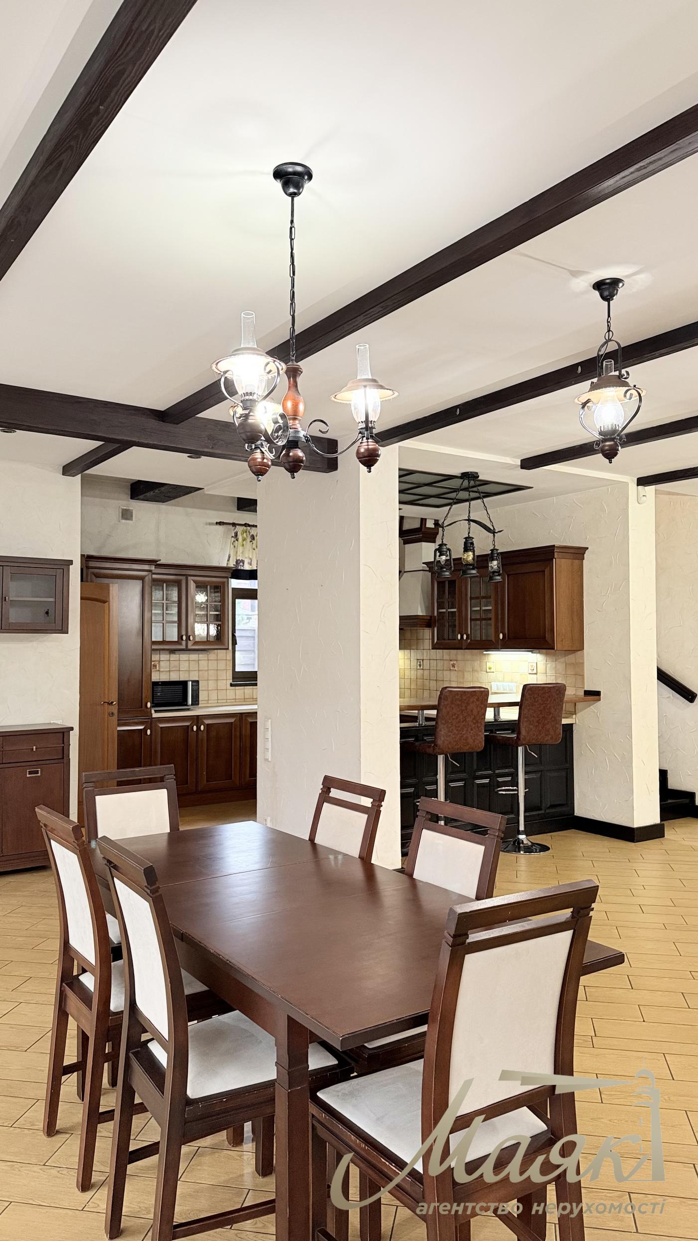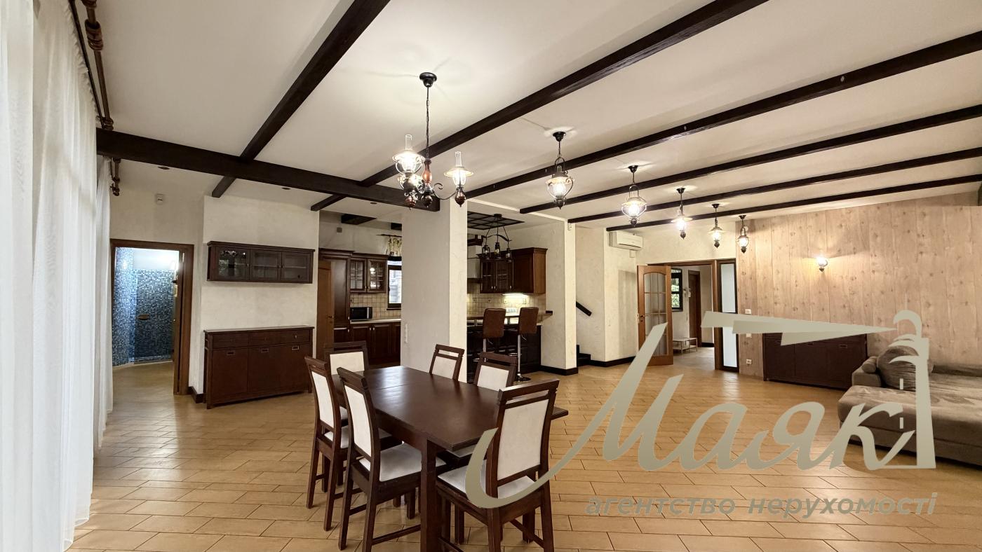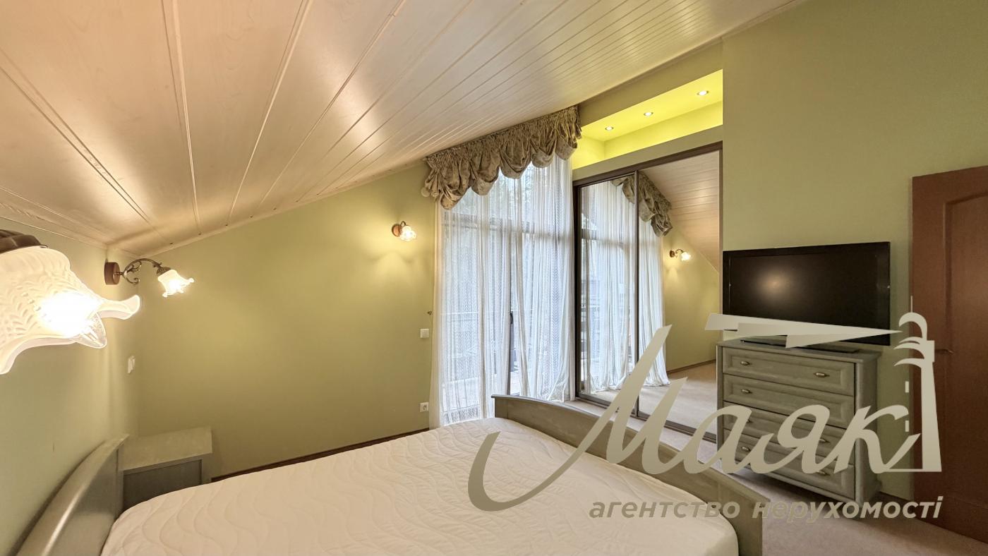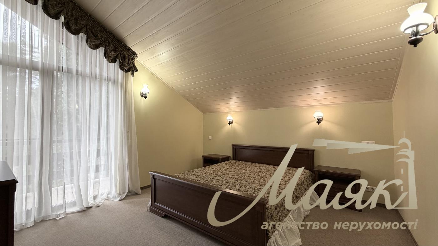 Оренда будинку в Конча-Заспі, котеджне містечко в сосновому лісі, Плюти. Вишуканий котедж для комфортного життя в оточенні природи. Основні характеристики: Площа будинку: 300 м², 2 рівні. Ділянка: 15 соток. Планування: Камінний зал. Їдальня зона і кухня з барною стійкою. 4 спальні, включно з майстер-спальнею із санвузлом і гардеробною. 3 гардероби. 4 санвузли. Бойлерна і котельня. Гараж на 2 авто загальна автомийка. Додаткові зручності: Теплий басейн. Сауна. Тераса з BBQ. 2 балкони. Ландшафтний дизайн з туями, декоративними деревами і чагарниками. Дитячий майданчик і освітлення території. Інтер'єр: Дизайнерський ремонт у стилі Прованс. Підлогове покриття: тепла підлога, дорогий ковролін. Панорамні вікна в підлогу (склопакети - дерево). Стіни - іспанська штукатурка. Сходи - дерево. Кахель і сантехніка - Італія. Імпортні меблі та вся необхідна побутова техніка. Комунікації та безпека: Світло (3 фази), генератор, свердловина з фільтрацією, каналізація - септик, газ. Супутникове ТБ, інтернет (оптоволокно). Відеоспостереження та цілодобова охорона. Переваги локації: Чисте повітря, елітне оточення. Асфальтований під'їзд, розвинена інфраструктура. Відмінна транспортна розв'язка. Телефонуйте, щоб організувати перегляд! ID:
