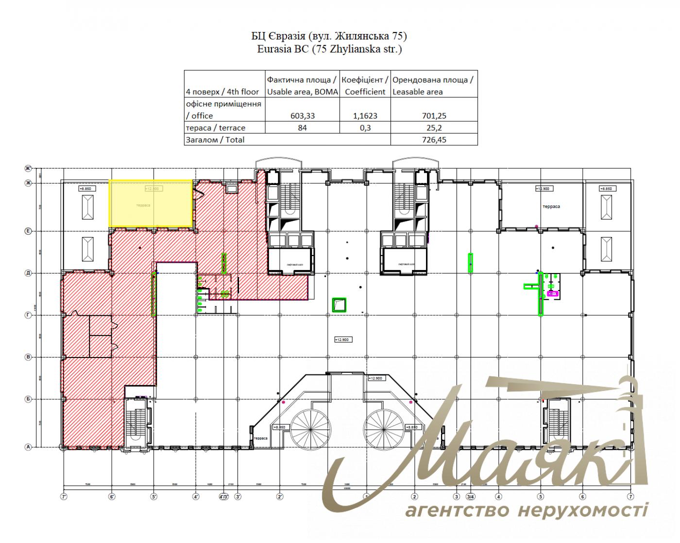 Оренда офісу 726м2 в БЦ Євразія, по вул.Жилянська 78, Центр.