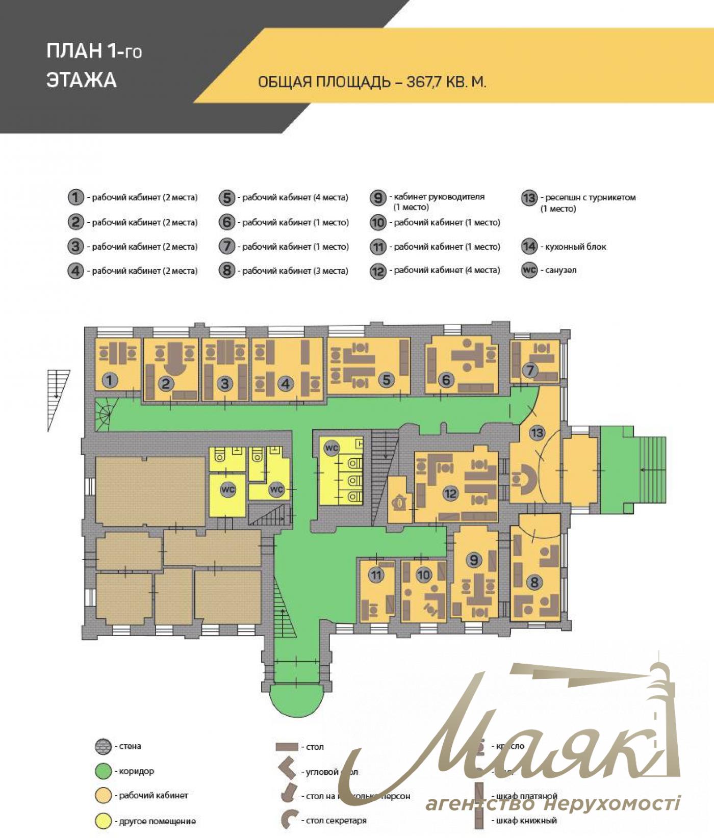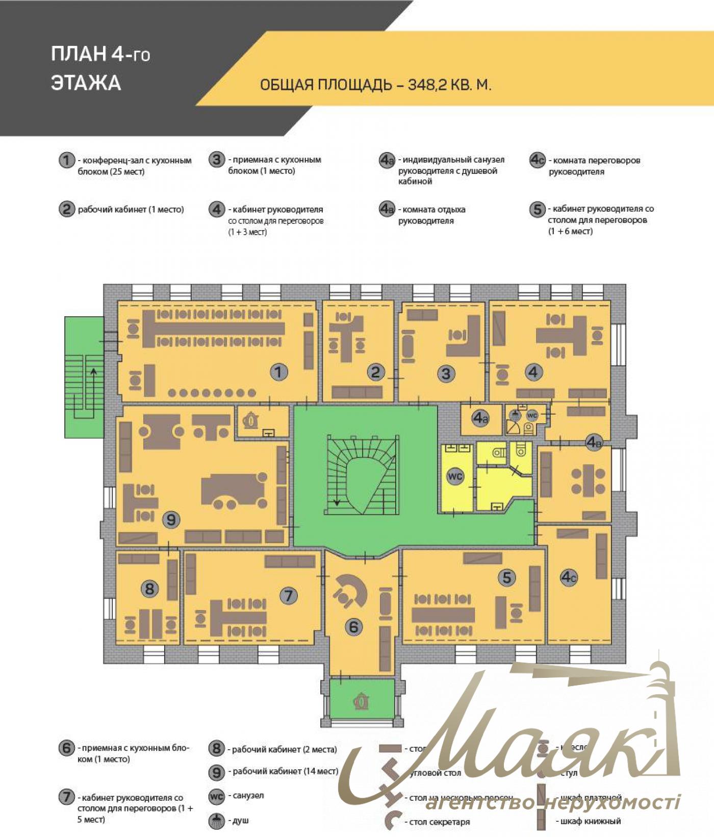 Пропонується в оренду ОСБ 1780 кв. у центрі Києва за адресою вул. Саксаганського, 67-б. Будівля розташована на перехресті вулиць Саксаганського, Жилянської та Тарасівської. Будівля складається з цокольного поверху, чотирьох основних поверхів і мансарди. Опис будівлі: 6 кабінетів для топ-менеджерів із приймальнями та кухнями. Сучасна переговорна кімната на 27 місць з обладнанням для переговорів і відеоконференцій. Кожен поверх обладнаний санвузлом і кухнею. Офіс повністю мебльований якісними меблями. Є доступ в інтернет (оптоволокно) і міські телефонні номери. Усі приміщення обладнані кондиціонерами. Наземна автономна стоянка та два криті гаражі. Планування: Цокольний поверх: 2 гаражі, кімната для водіїв та обслуговуючого персоналу, серверна, 10 архівних приміщень. 1 поверх (288 кв.м): 12 кабінетів, 4 санвузли, кухня. 2 поверх (328 кв.м): 12 кабінетів, 3 санвузли, кухня. 3 поверх (349 кв.м): 16 кабінетів, 3 санвузли. 4 поверх (348 кв.м): 10 кабінетів, конференц-зал, 3 санвузли, 4 кухні. Мансарда (68 кв.м): 2 кабінети. Усього: 50 кабінетів, 13 санвузлів. Будівля оснащена системою відеоспостереження та охорони по периметру, є 2 входи (головний і додатковий). Транспортна розв'язка: Зручне розташування поруч із вулицями Саксаганського та Жилянською. Найближчі станції метро: Університет, Олімпійська, Палац спорту, Льва Толстого.