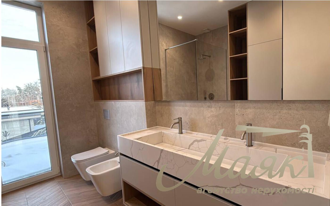 Пропонується до продажу 2-х поверховий будинок 246м2, Ходосівка Планування: Перший поверх: - зона гардероба, котельня, санвузол, кабінет, кухня-вітальня з виходом на криту терасу; Другий поверх: - 2 кімнати, санвузол, господарська спальня з окремим санвузлом, гардеробом і власним балконом з доступом до загальної тераси; Інженерні комунікації: - Газ; - Електропостачання - 16 кВт, 3 фази; - Вода - свердловина, встановлені фільтри на очищення; - Опалення - газовий котел, водяна тепла підлога на двох поверхах; - Каналізація - індивідуальний септик із переливом на 12 м3; - Інтернет - оптоволокно. Переваги та конструктив будинку: - Зручний доїзд до будинку і готова прибудинкова територія; - Котеджне містечко; - Охорона; - Басейн; - Простора ділянка з можливістю облаштувати повноцінну СПА-зону, дитячий майданчик та інше; - Виконано сучасний дизайнерський ремонт і встановлено якісні меблі; - Кухонна техніка від Franke; - Встановлений камін; - Фундамент - монолітний стрічкового типу з палями, гідроізольований та утеплений; - Стіни - червона цегла; - Утеплення - пінопласт 150 мм; - Фасад - декоративна штукатурка; - Перекриття - монолітна бетонна плита; - Вікна - якісні шумоізоляційні двокамерні склопакети від Salamander; - Дах - утеплений мінватою 250мм; - Обігрів будинку - встановлений газовий котел, тепла водяна підлога на двох поверхах; - Рулонний газон і система автоматичного поливу Hunter; - Посаджені декоративні рослини; - Ворота - відкатні, зі встановленою автоматикою; - Зроблено дренажну систему водовідведення; - Територія викладена бруківкою; - Загальний паркінг на 3 авто; Інфраструктура: ТРЦ МегаМаркет, аутлет Мануфактура, АТБ, Сільпо, McDonald's, школи, дитсадок, дитячі майданчики, магазини, фітнес-клуб, кінний клуб, озеро, пляж, ліс. #29840