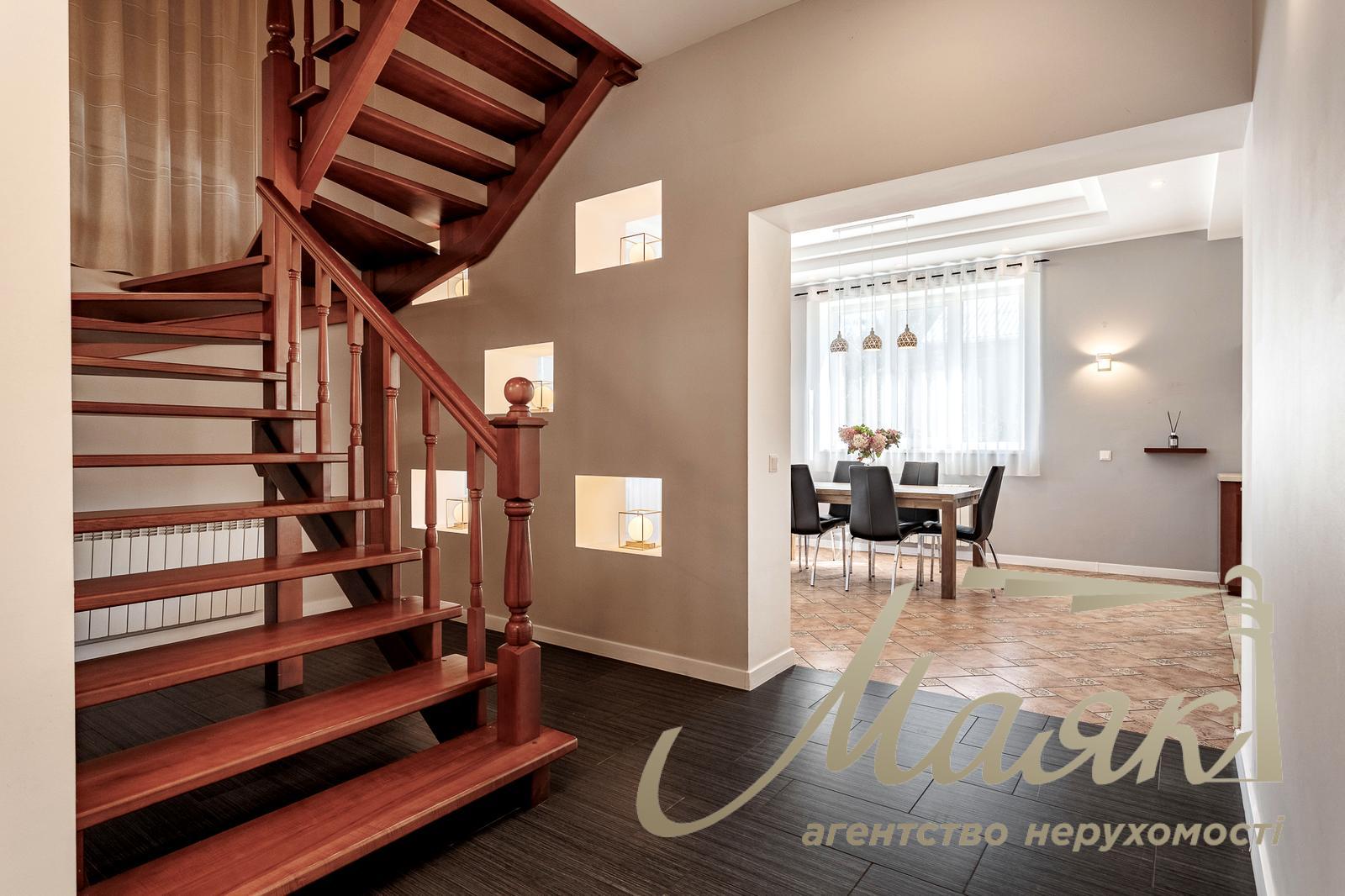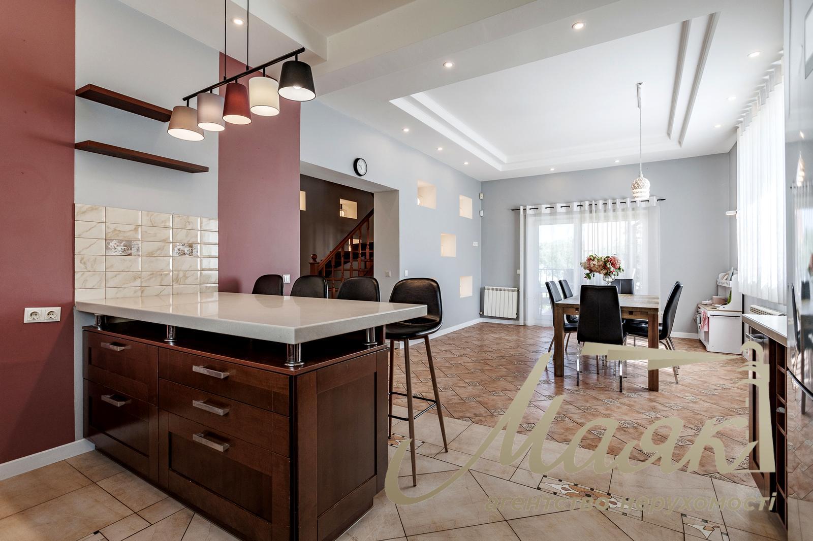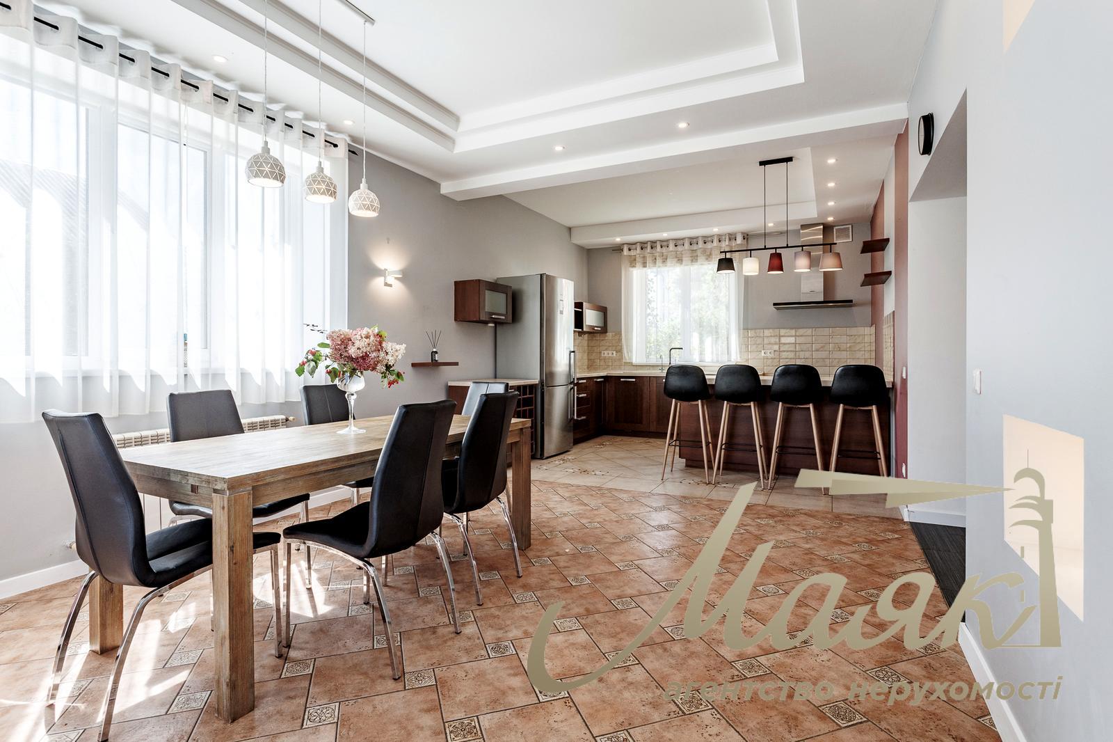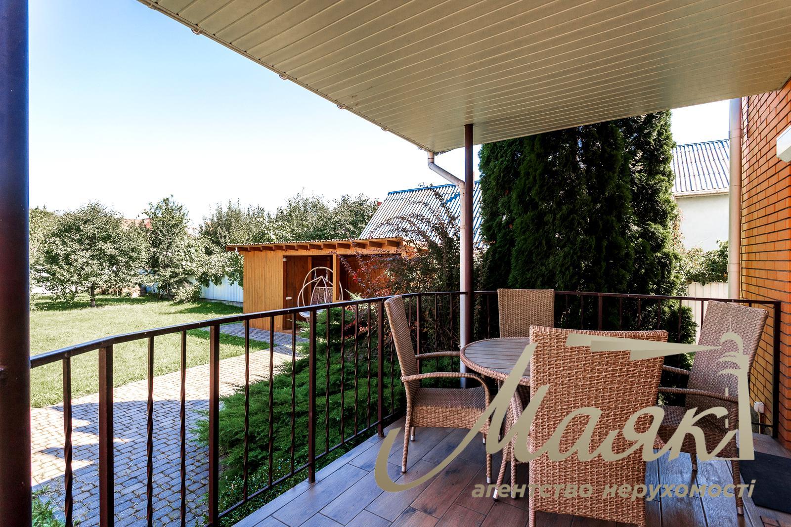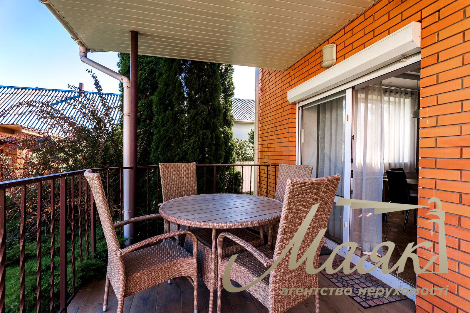 Продаж сучасного затишного будинку в Хотові, всього 5 км від Києва Загальна площа будинку становить 233 м². У будинку п'ять спалень і три санвузли. Площа ділянки - 12 соток. Будинок повністю мебльований і укомплектований усією необхідною побутовою технікою. На першому поверсі розташована простора вітальня площею 27 м² із сучасним каміном і плазмовим телевізором 55", кухня-їдальня 33 м² з виходом на терасу, гостьова спальня, ванна кімната, гардеробна, котельня, хол і сходи. Другий поверх включає майстер-спальню з власною ванною кімнатою, три додаткові спальні (дитячі та кабінет), ще одну ванну кімнату, гардеробну, хол і сходи. На території ділянки додатково розташовані сауна, господарський сарай і літня кухня з терасою - чудовий простір для відпочинку та прийому гостей. Будинок побудований із газоблоку з утепленням і облицьований клінкерною цеглою. Перекриття - залізобетонні, покрівля - металочерепиця. Опалення комбіноване: радіатори і тепла підлога в зонах із керамічною плиткою. Встановлено газовий котел Viessmann і бензиновий генератор потужністю 10 кВт. Власна свердловина глибиною 43 м із системою фільтрації води. Каналізація - два бетонні септики плюс окремий для сауни. Вікна з двокамерними склопакетами, зовнішні ролети, броньовані вхідні двері. Будинок обладнаний сигналізацією, камерами відеоспостереження та освітленням двору по периметру. Ремонт виконаний у 2019 році. Інтер'єр повністю укомплектований якісними меблями та технікою. Встановлено сучасне енергоефективне освітлення. У вітальні - hi-tech камін Rocal (Іспанія), телевізор Samsung 55" і аудіосистема. Кухня оснащена технікою Siemens (варильна поверхня, витяжка, посудомийна машина, холодильник), фасадами з натурального дерева, фурнітурою Blum, островом і мийкою зі штучного каменю. У наявності все кухонне начиння. Встановлено пральну і сушильну машини Bosch, кондиціонери. Ділянка доглянута й озеленена: яблуні, груші, черешні, персики, горіх, виноград, калина, липа, ягідні кущі. Парковка розрахована на три автомобілі під навісом з автоматичними воротами і одне додаткове місце з ручними воротами. Асфальтований під'їзд до будинку. Локація ідеально поєднує близькість до Києва та комфорт заміського життя. До метро "Теремки" - близько 7 км, до кордону Києва - 5 км. Зручні виїзди на вулицю Заболотного, Новообухівську та Одеську траси. Поруч знаходяться Лісники, Чабани, Новосілки, парк Феофанія, Хотівський академічний ліцей, приватна школа "Безмеж", дитячий садок "Crystal Kids", супермаркети "Сільпо", "Фора", "Мегамаркет", а також зупинка міського транспорту.