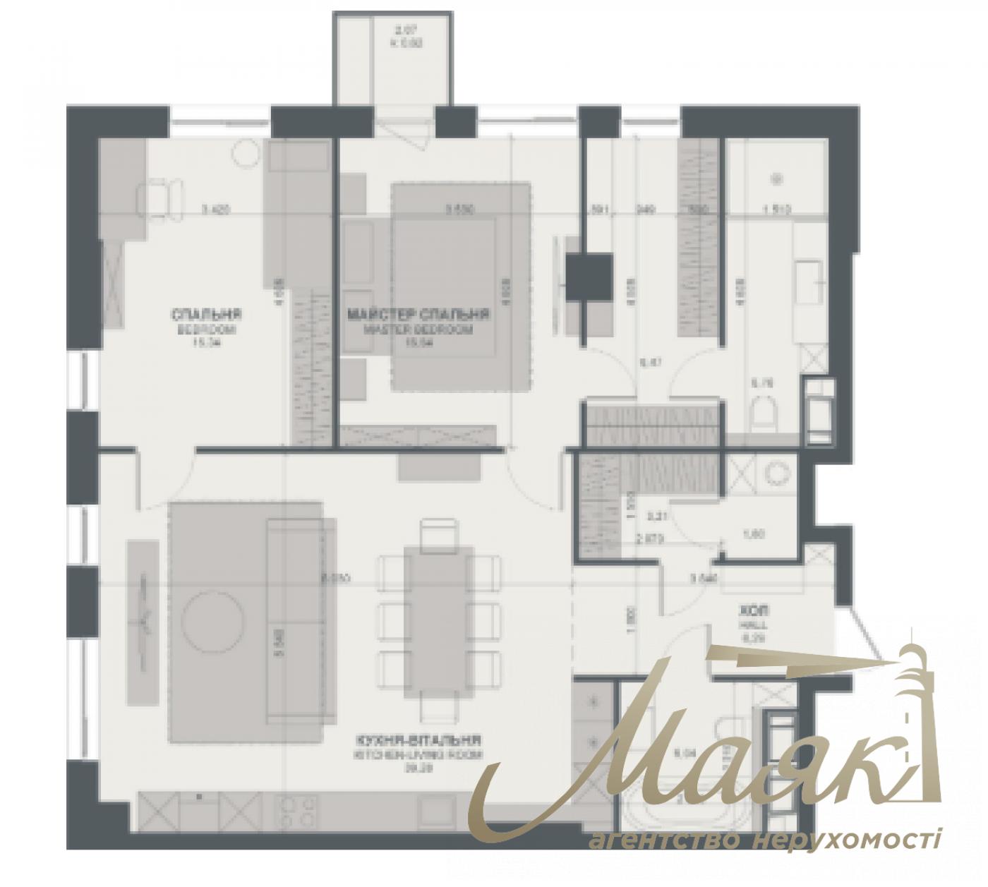 For sale 3-bedroom apartment LCD Trinity, Henri Barbusa str. Functional layout: - kitchen-living room - master bedroom (with its own bathroom and dressing room) - nursery/cabinet or guest room - additional bathroom - dressing room LCD "Trinity" - premium complex on Pechersk: modern architecture, panoramic windows and high ceilings. Convenient location - near business centers, restaurants and metro. Closed territory, concierge, 24-hour security and underground parking. Well-appointed recreation areas and children's playgrounds, developed infrastructure in walking distance. Ideal for a comfortable life or investment. 29574