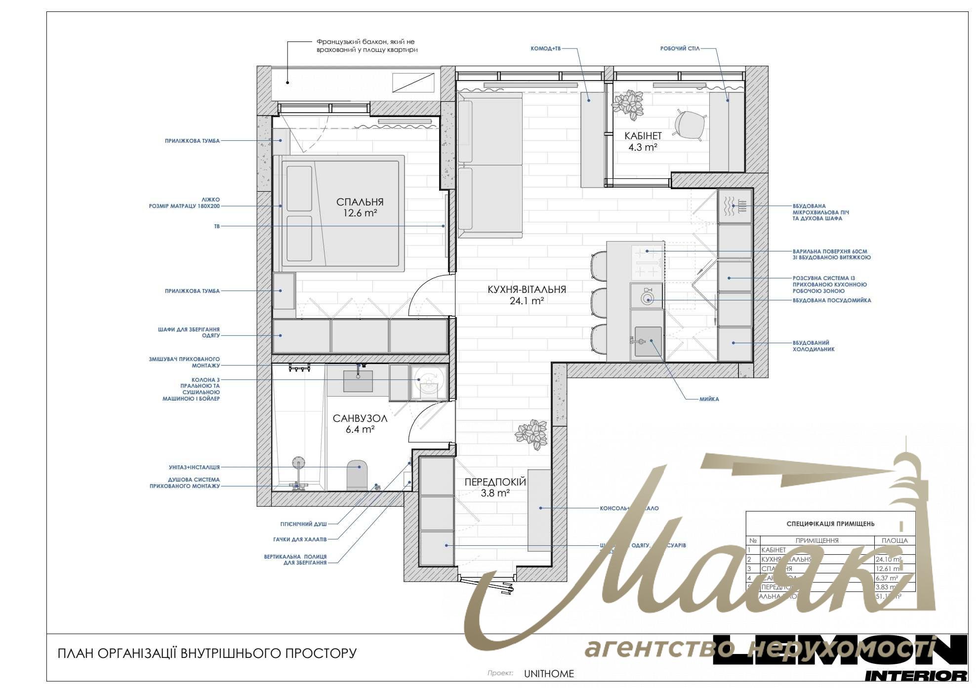 For sale apartment 51,17 m² with a view of the sunset in the Business Class Residential Complex "UNIT Home" Shevchenko district