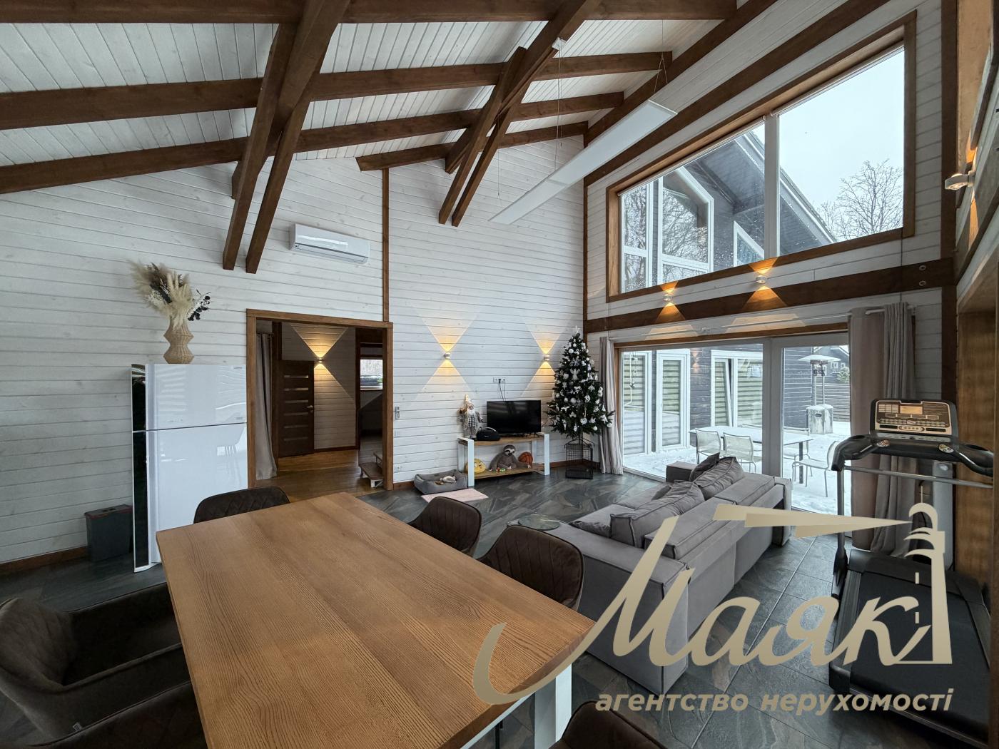 House for rent in Lesniki village near the prestigious Equides Club and Golf Club! House area: 193 m² Construction technology: modern Norwegian, wall thickness - 26 cm, high energy efficiency. Technical equipment: - Panoramic double glazed windows. - Heat pump. - Stabilizer Volter and backup generator Konner&Sohnen. - Water purification system for home osmosis PURICOM CE-4 PUMP for drinking water. - Septic tank and well. - Conducted electricity and high-speed Internet. Planning: - 2 floors. - 3 bedrooms. - 3 bathrooms. Spacious kitchen-living-dining room with a full set of appliances, including built-in washing machine and dryer Miele. Built-in closets. Designer interior and exterior lighting. Amenities: - Parking for 2 cars under carport. - Spacious terrace with picturesque views. Landscape design: - Automatic irrigation system. - Harmonious combination with nature. This home combines modern technology, comfort and natural beauty. Call to organize a viewing! ID: 10237