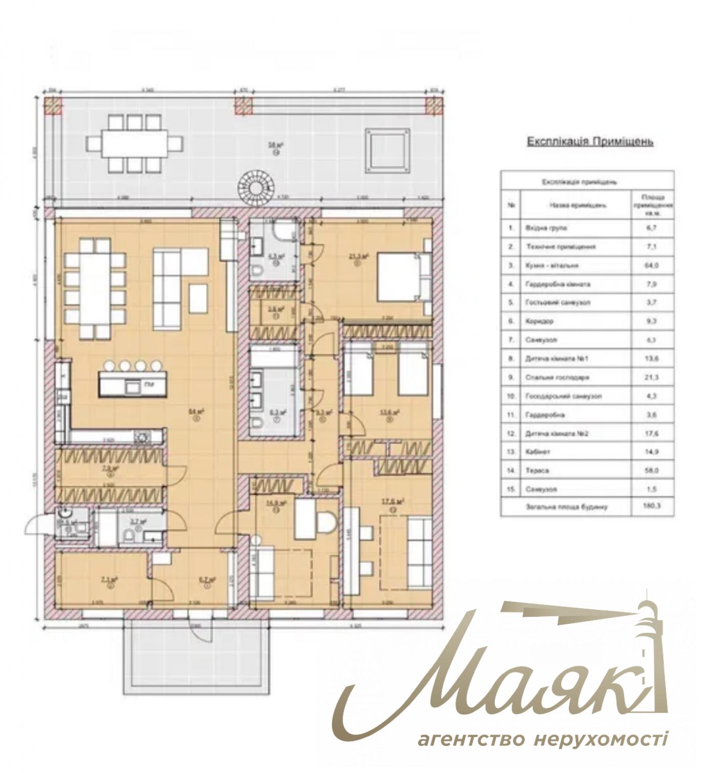 общая площадь: 185 м²